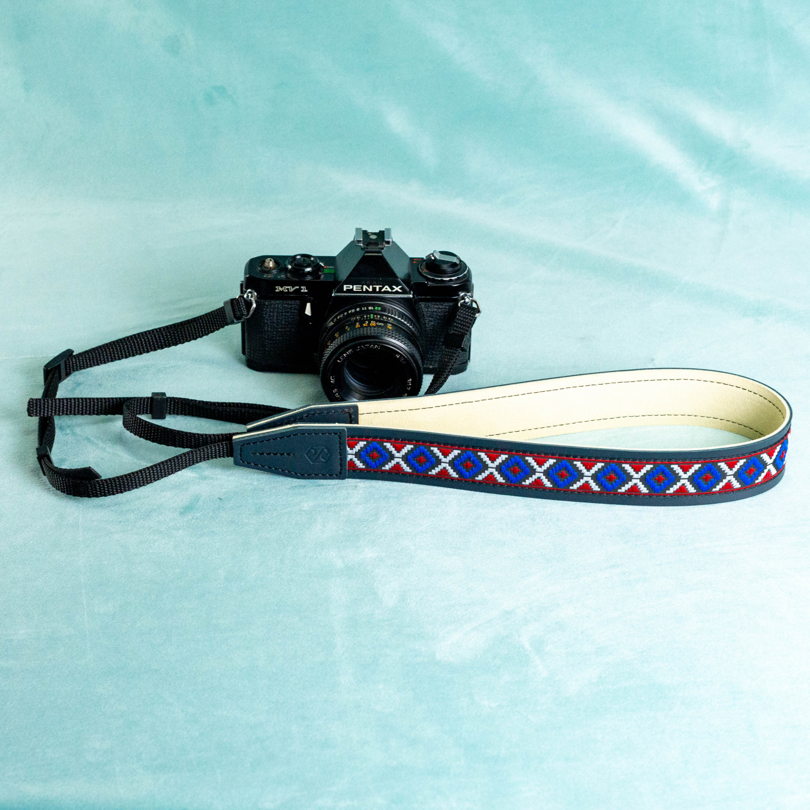 Strap/Curea pentru camere foto sau aparate DSLR/Mirrosless din piele naturala cu motiv traditional lucrata in regim de manufactura.
