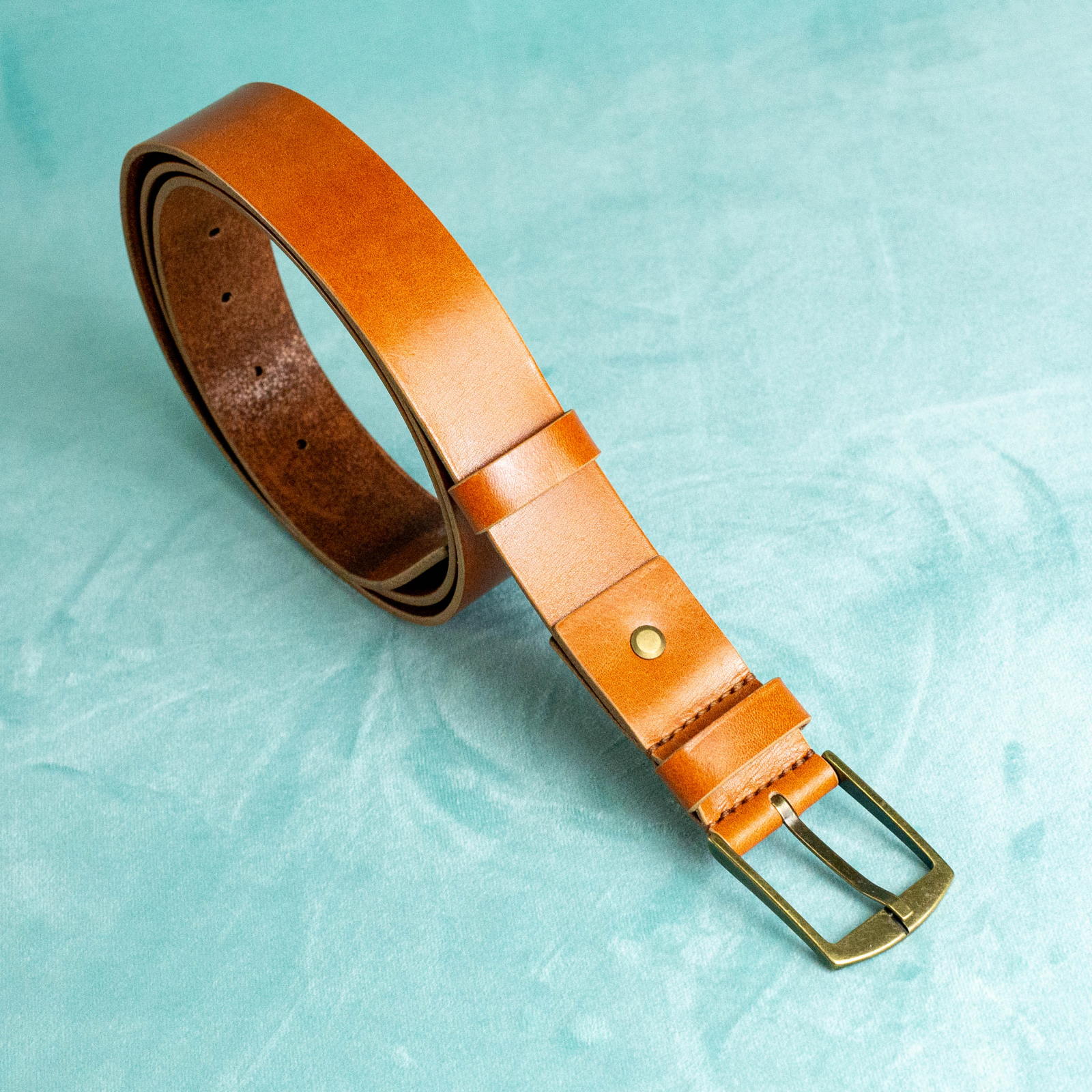 „Suit&Jeans 35” – Este o curea facuta integral manual dintr-o piele de vita cu o grosime de 3.5mm. Canturile sunt finisate manual prin metoda „burnish” avand ca rezultat final o margine lucioasa cu un aspect placut.