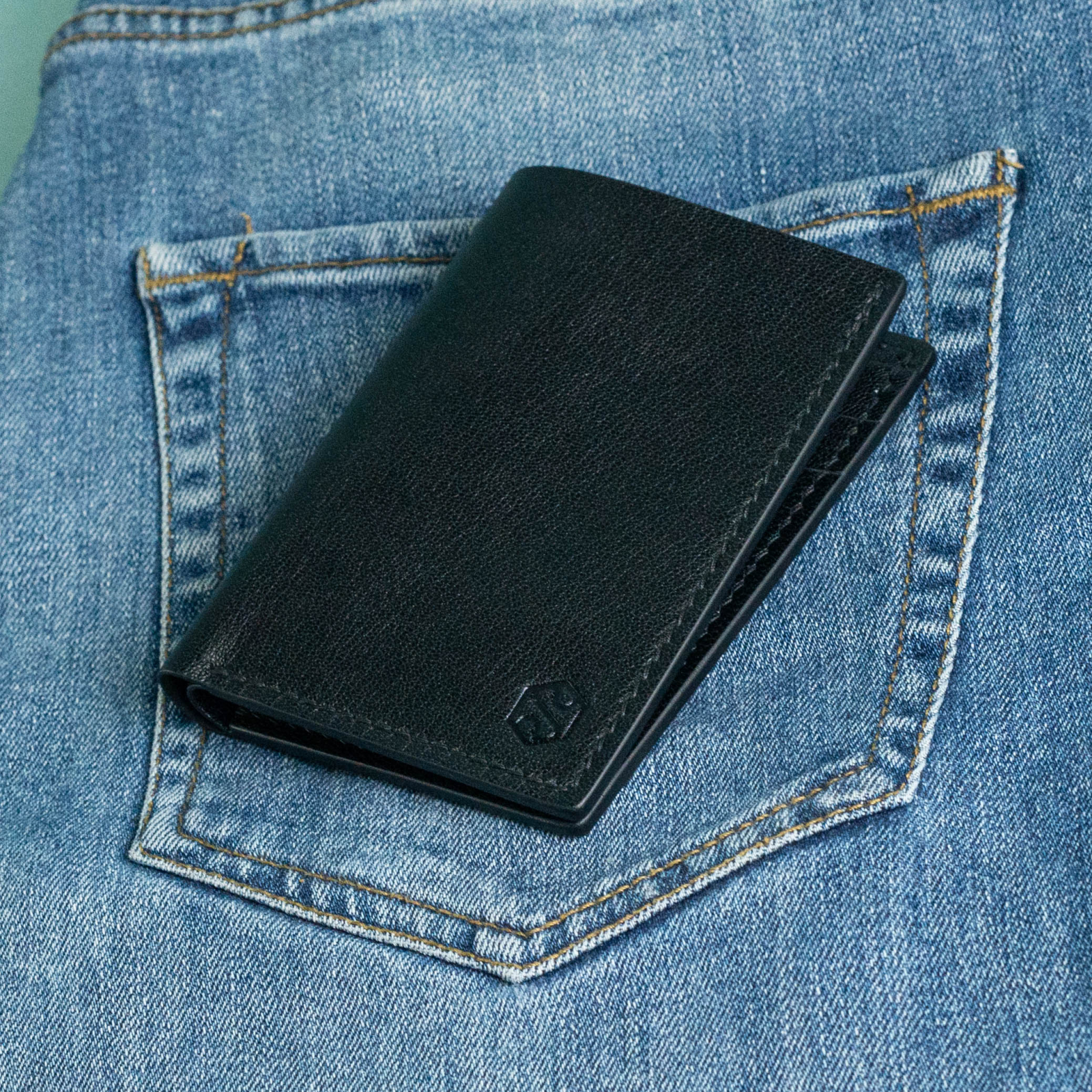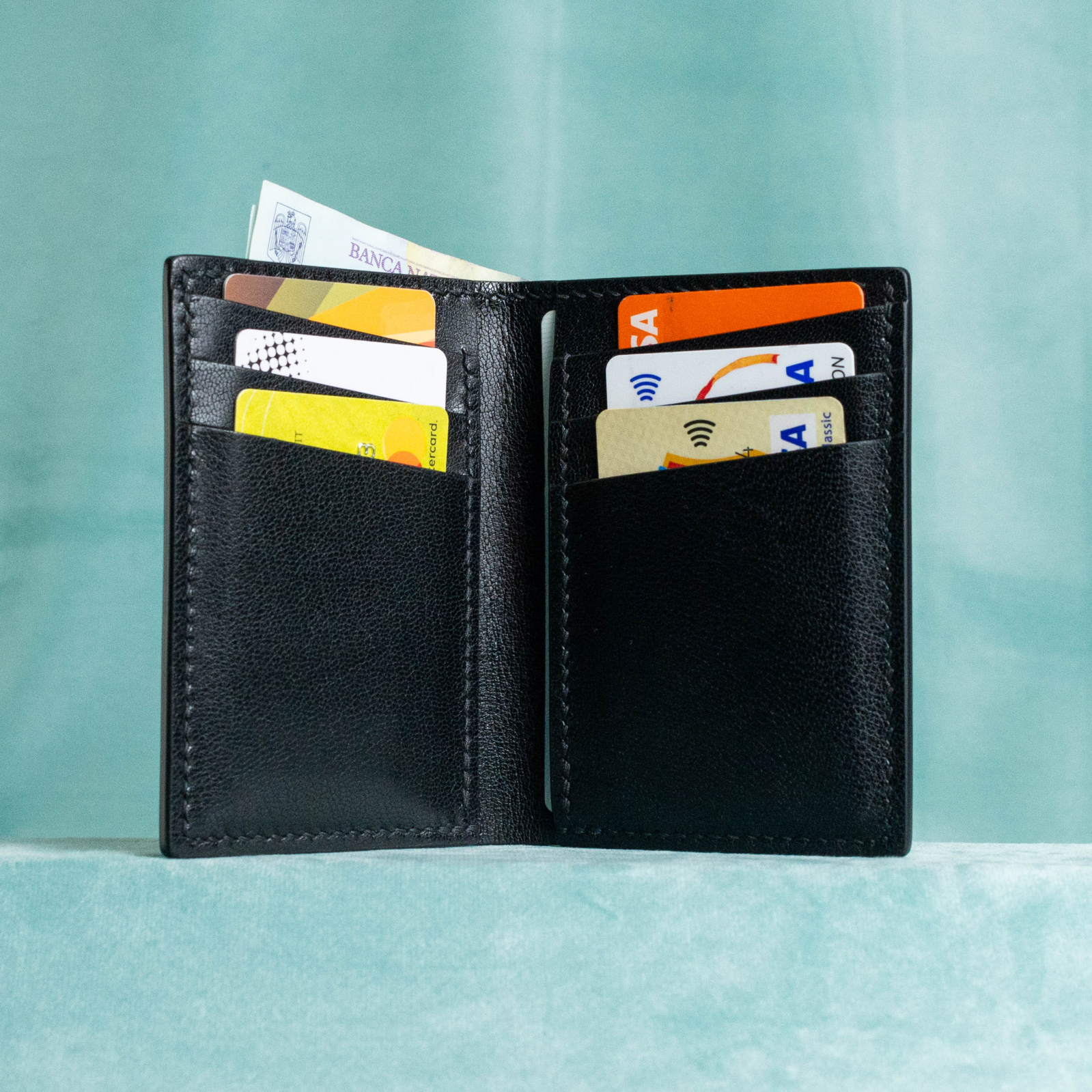 “The full one” – Portofel barbati, bifold, din piele naturala de capra, cusut manual - Negru este un portofel de tip inalt, practic si modern. Este facut dintr-o piele de capra, usor ferma, ce are o textura fina pe suprafata acesteia.
